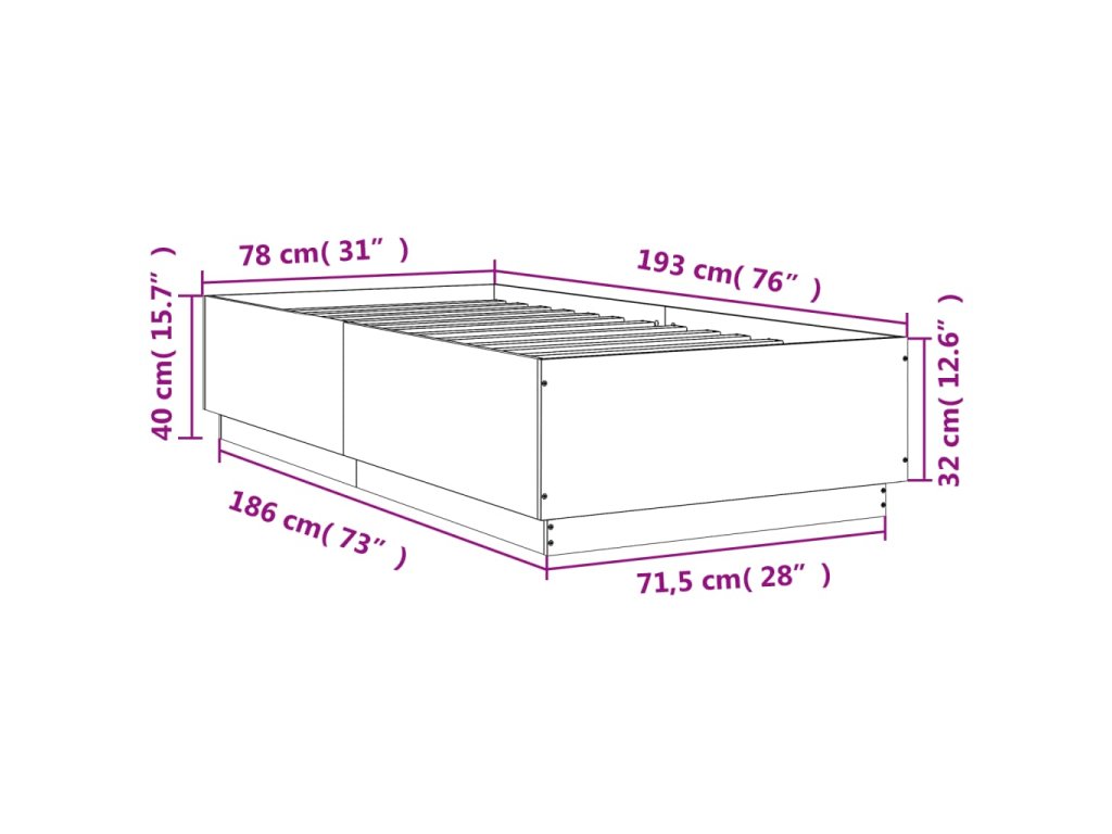 vidaXL Posteľný rám dub sonoma 75x190 cm kompozitné drevo
