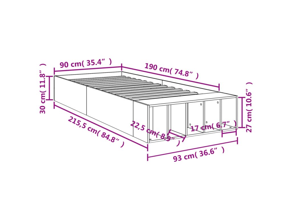 vidaXL Posteľný rám dub sonoma 90x190 cm kompozitné drevo