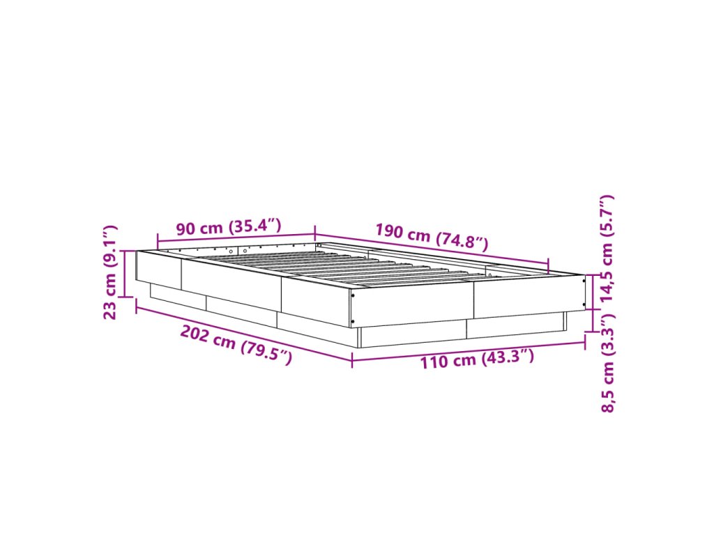 vidaXL Posteľný rám dub sonoma 90x190 cm kompozitné drevo