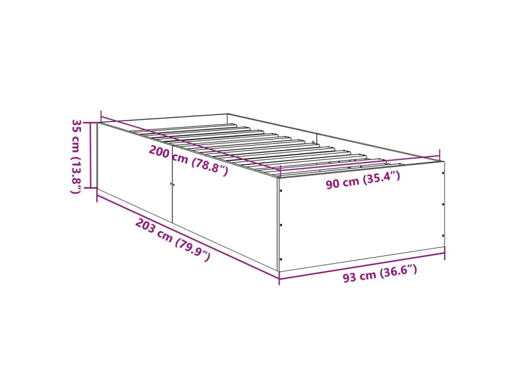 vidaXL Posteľný rám dub sonoma 90x200 cm borovicový masív