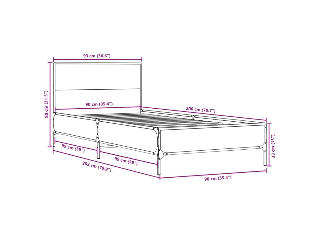 vidaXL Posteľný rám dub sonoma 90x200 cm kompozitné drevo a kov