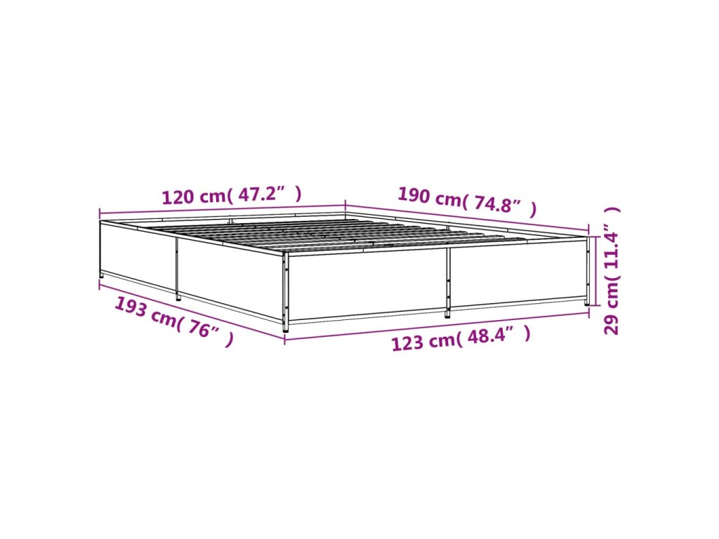 vidaXL Posteľný rám dymový dub 120x190 cm kompozitné drevo a kov