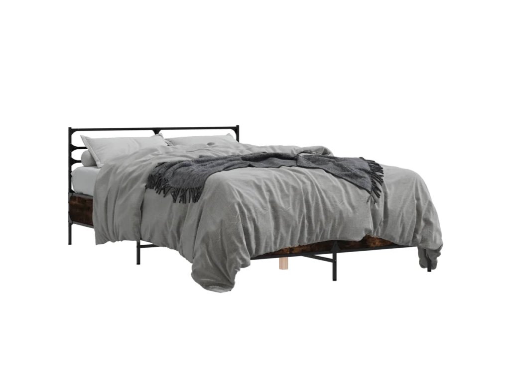 vidaXL Posteľný rám dymový dub 135x190 cm kompozitné drevo a kov