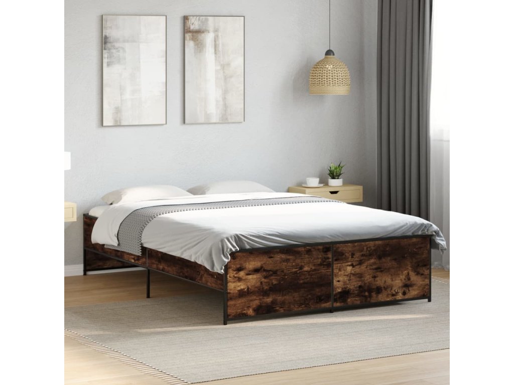 vidaXL Posteľný rám dymový dub 135x190 cm kompozitné drevo a kov
