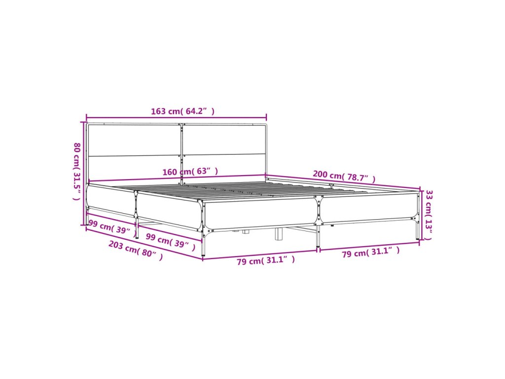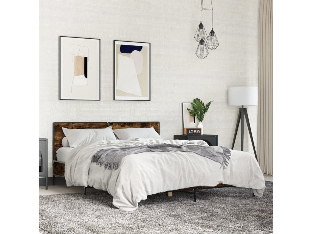vidaXL Posteľný rám dymový dub 160x200 cm kompozitné drevo a kov