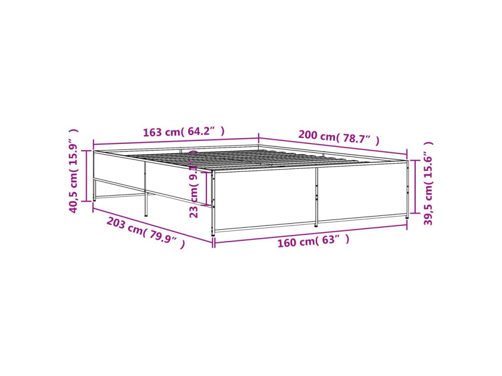 vidaXL Posteľný rám dymový dub 160x200 cm kompozitné drevo a kov