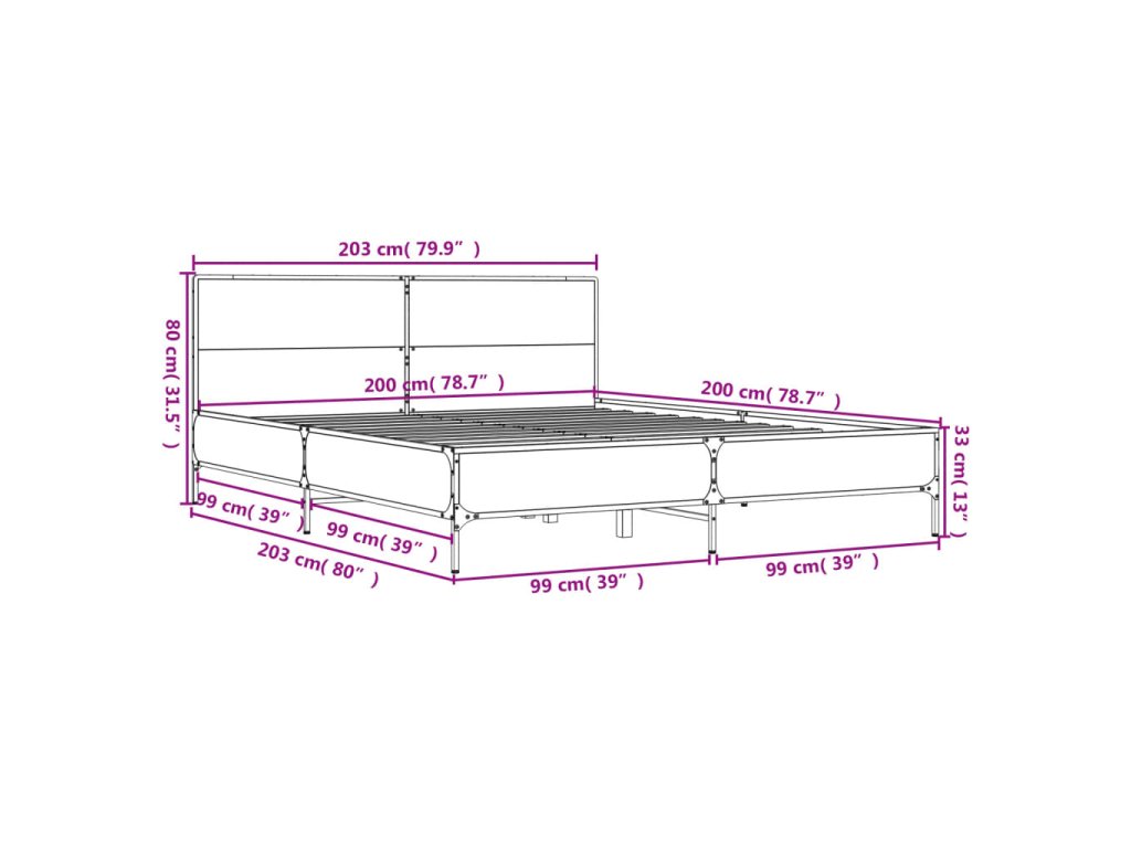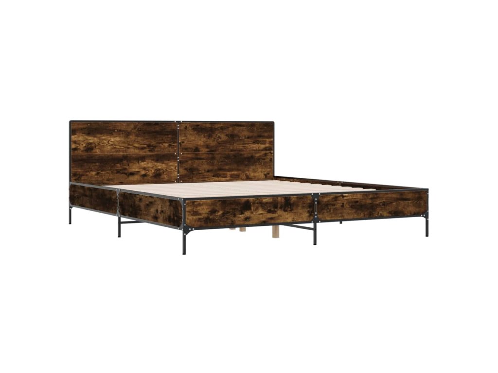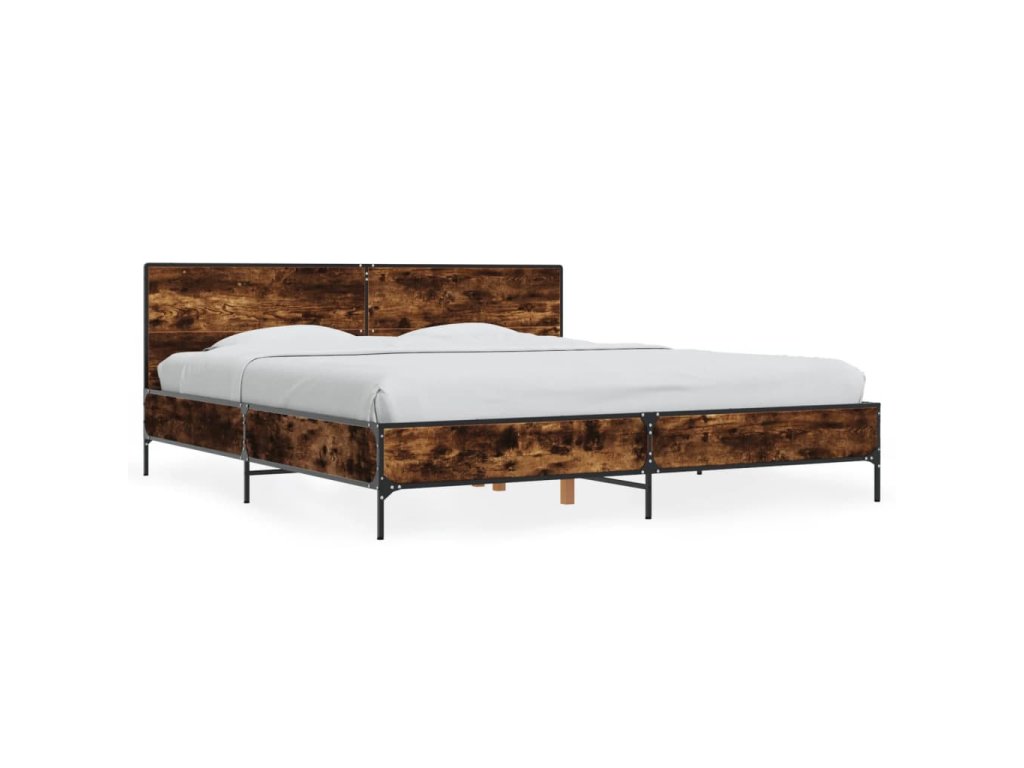 vidaXL Posteľný rám dymový dub 200x200 cm kompozitné drevo a kov
