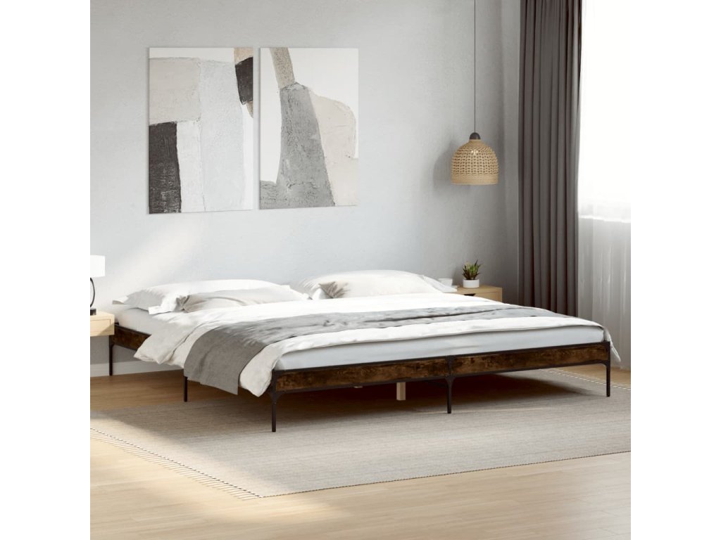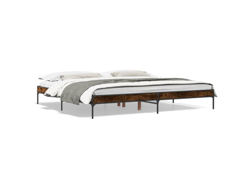 vidaXL Posteľný rám dymový dub 200x200 cm kompozitné drevo a kov