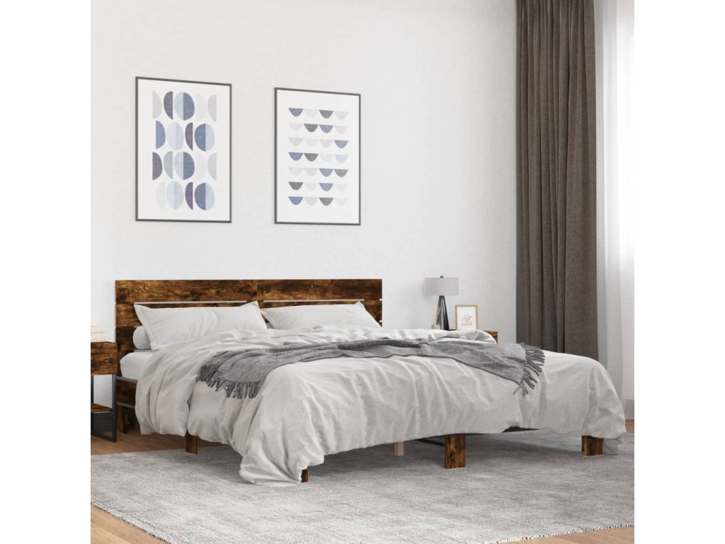 vidaXL Posteľný rám dymový dub 200x200 cm kompozitné drevo a kov