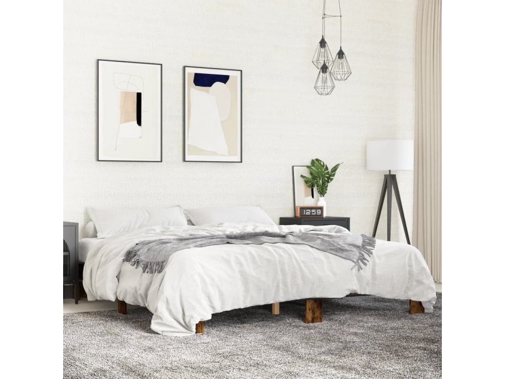 vidaXL Posteľný rám dymový dub 200x200 cm kompozitné drevo a kov