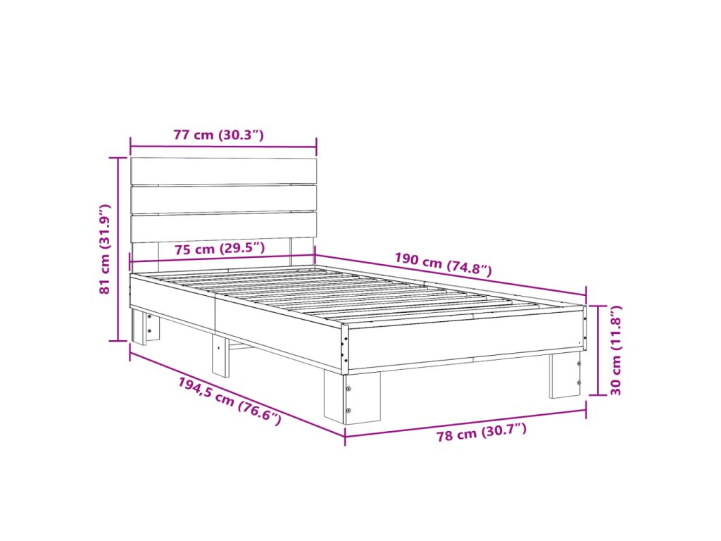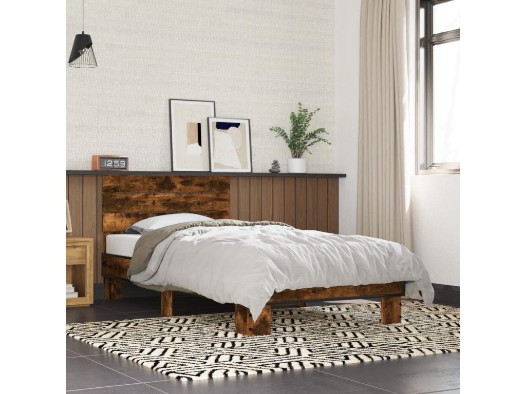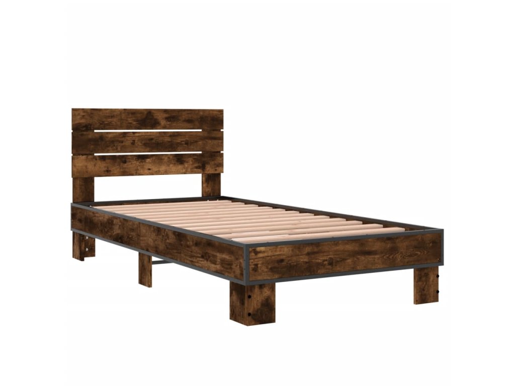 vidaXL Posteľný rám dymový dub 75x190 cm kompozitné drevo a kov