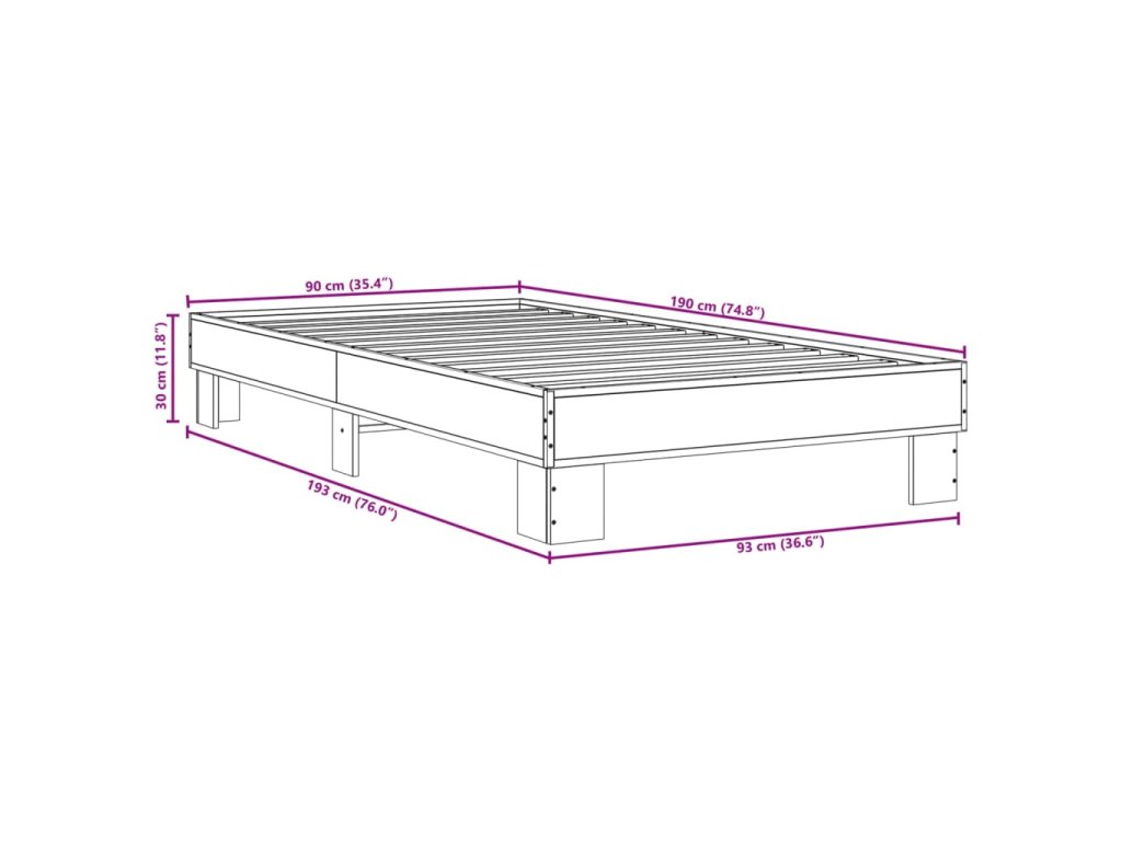 vidaXL Posteľný rám dymový dub 90x190 cm kompozitné drevo a kov