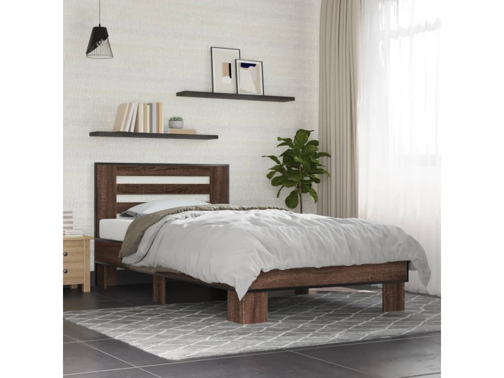 vidaXL Posteľný rám hnedý dub 100x200 cm kompozitné drevo a kov