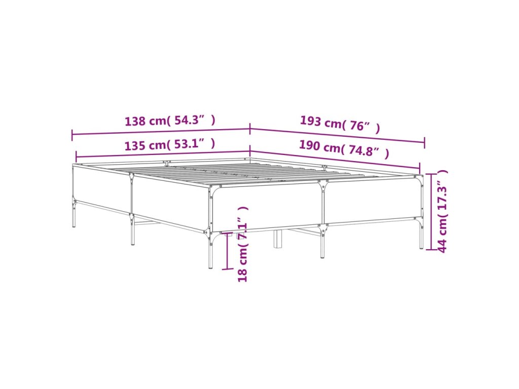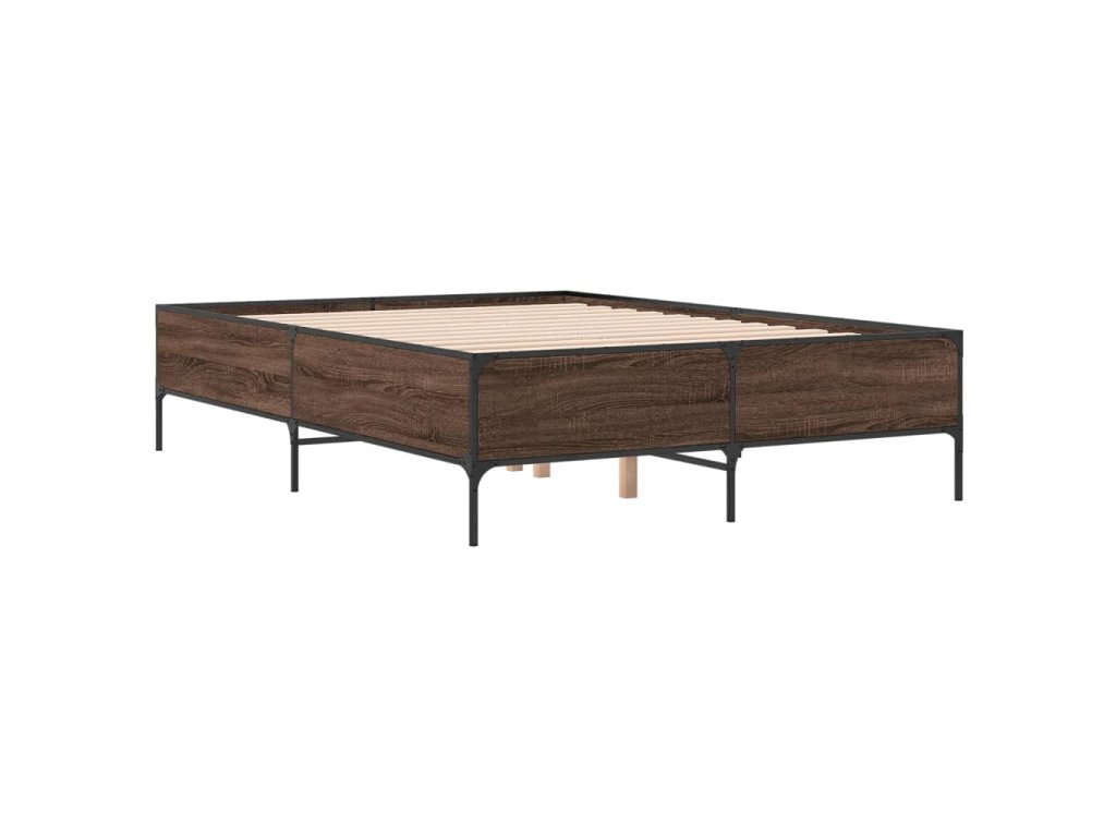 vidaXL Posteľný rám hnedý dub 135x190 cm kompozitné drevo a kov