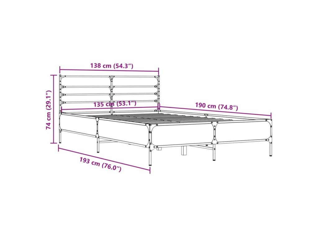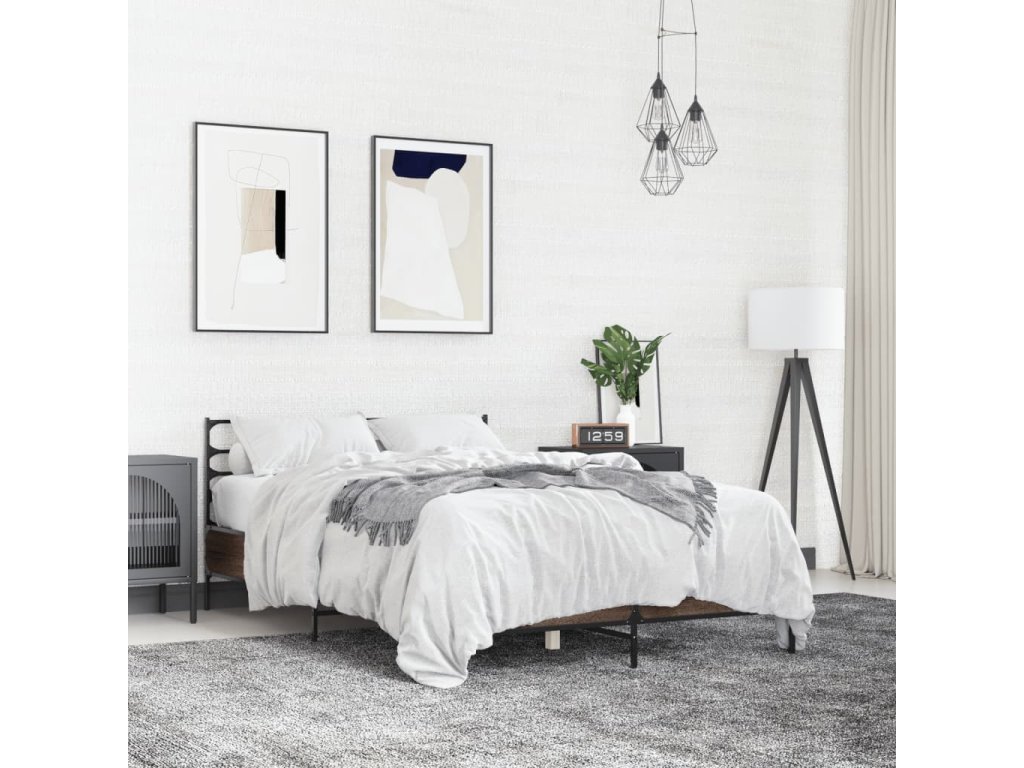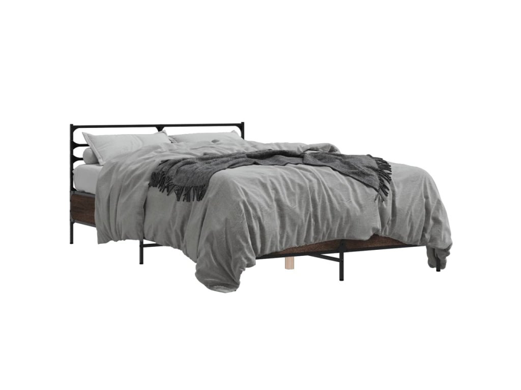 vidaXL Posteľný rám hnedý dub 135x190 cm kompozitné drevo a kov