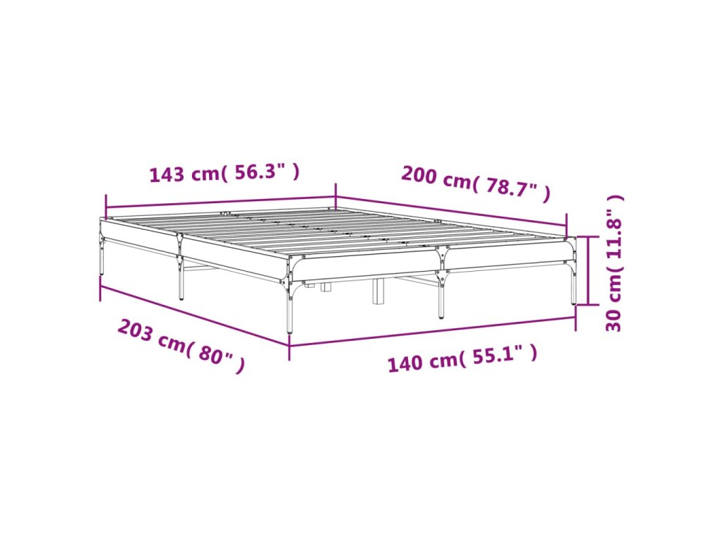 vidaXL Posteľný rám hnedý dub 140x200 cm kompozitné drevo a kov