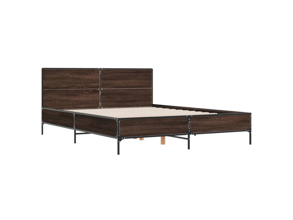 vidaXL Posteľný rám hnedý dub 150x200 cm kompozitné drevo a kov