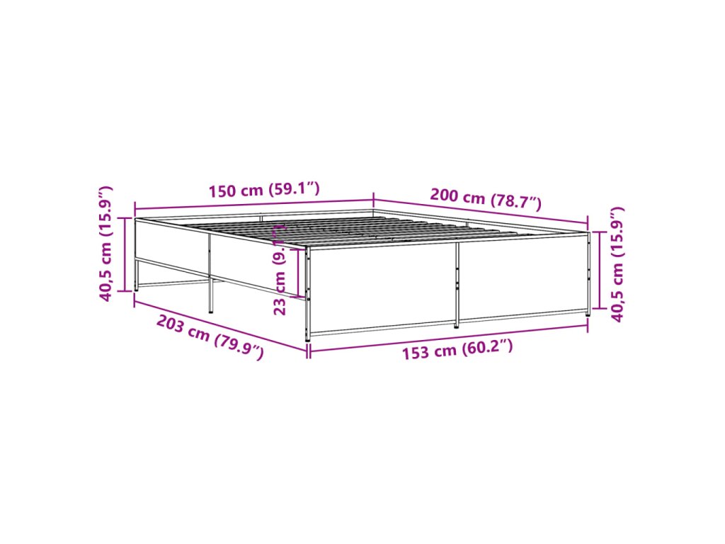 vidaXL Posteľný rám hnedý dub 150x200 cm kompozitné drevo a kov