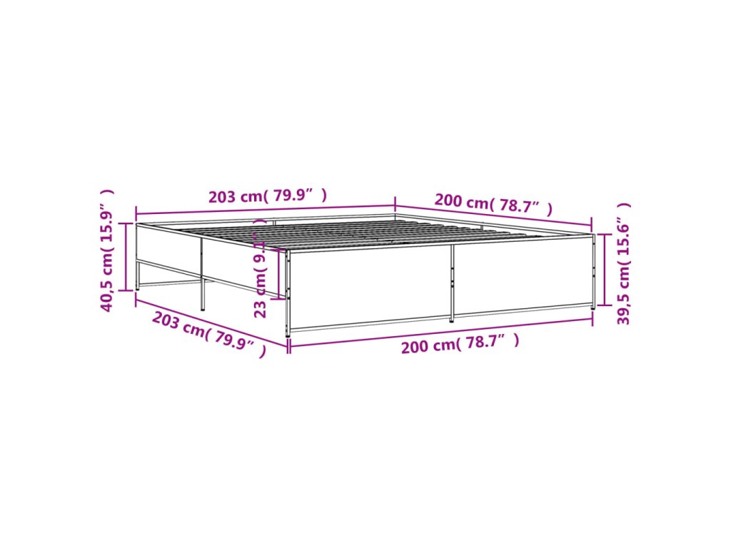 vidaXL Posteľný rám hnedý dub 200x200 cm kompozitné drevo a kov