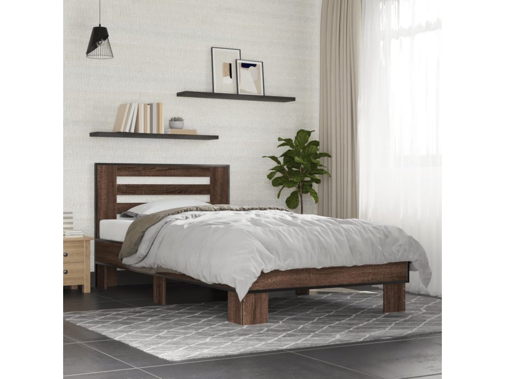 vidaXL Posteľný rám hnedý dub 90x190 cm kompozitné drevo a kov