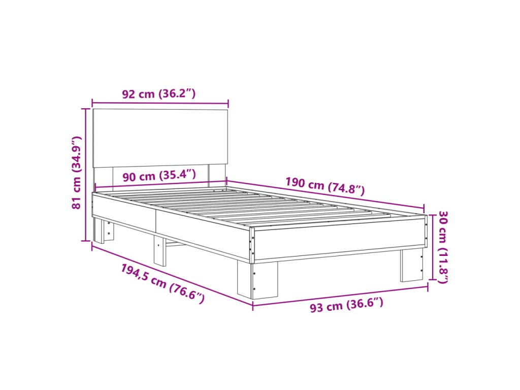 vidaXL Posteľný rám hnedý dub 90x190 cm kompozitné drevo a kov