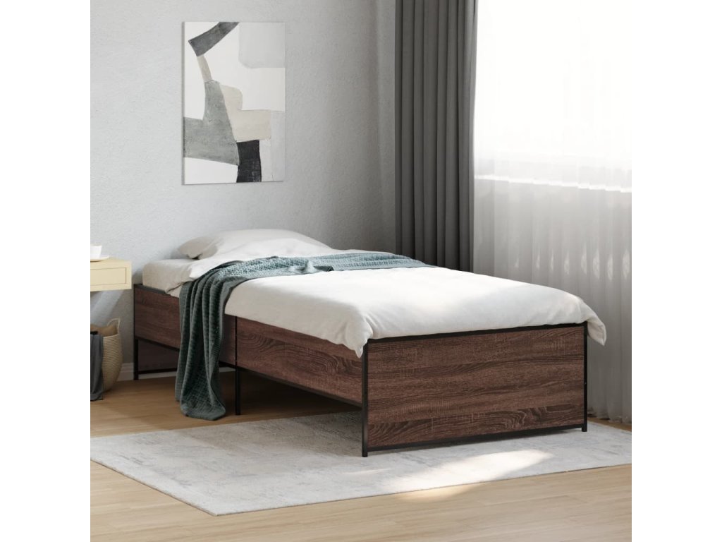 vidaXL Posteľný rám hnedý dub 90x200 cm kompozitné drevo a kov