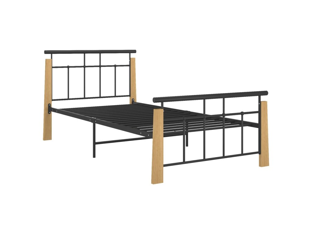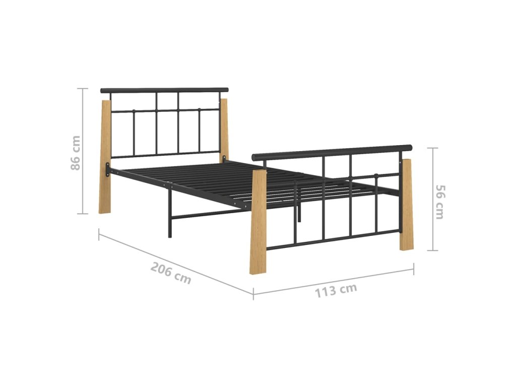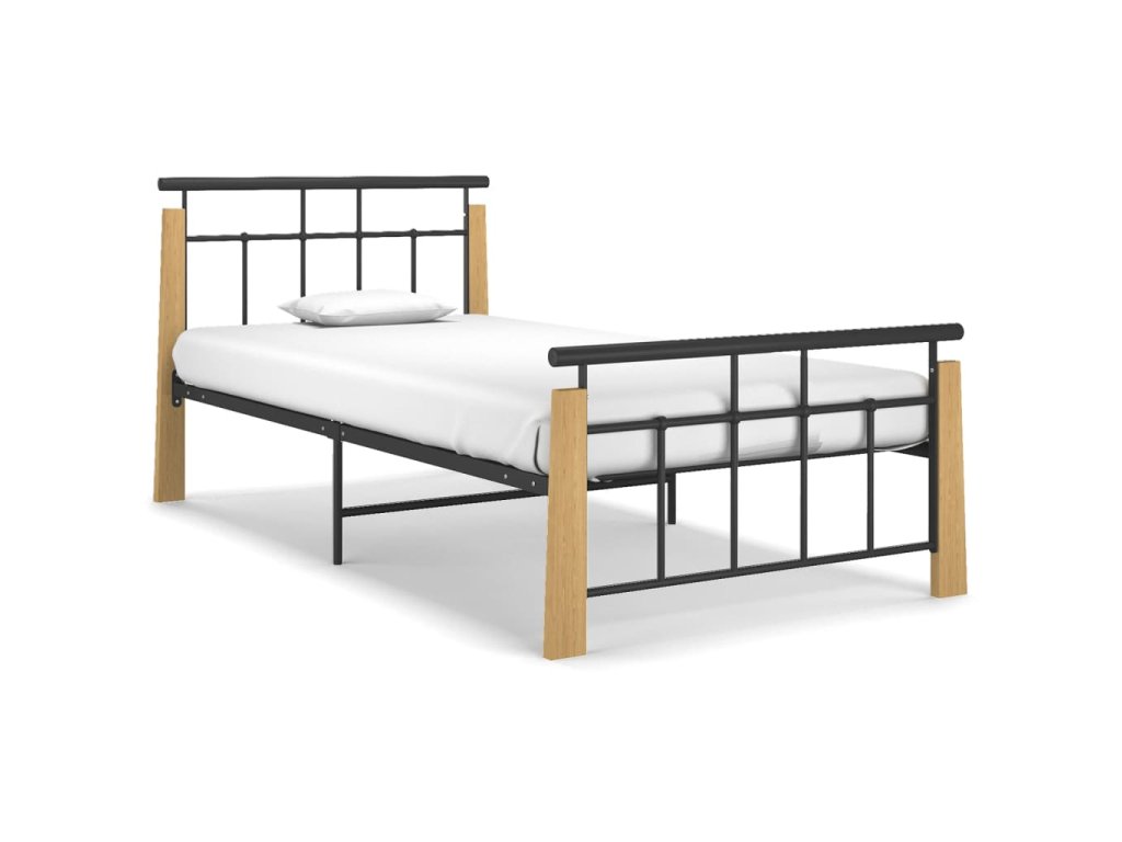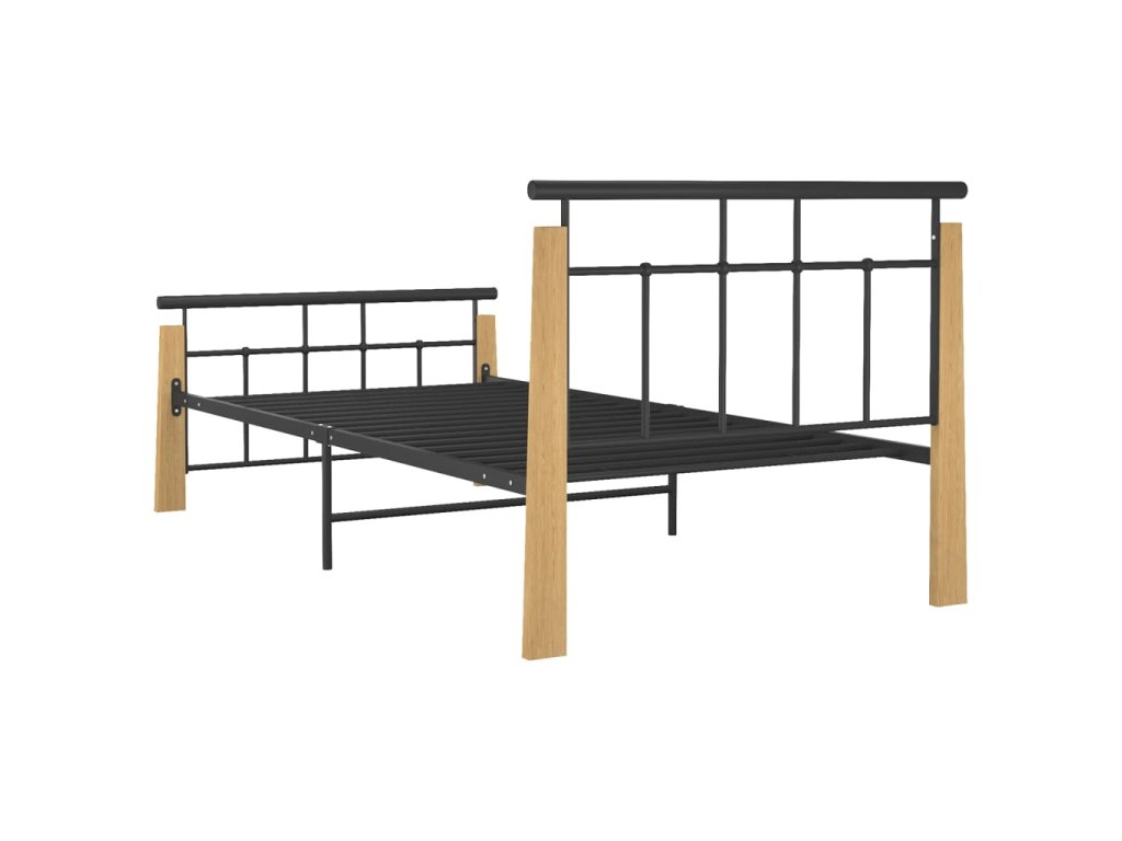 vidaXL Posteľný rám kov a masívne dubové drevo 100x200 cm