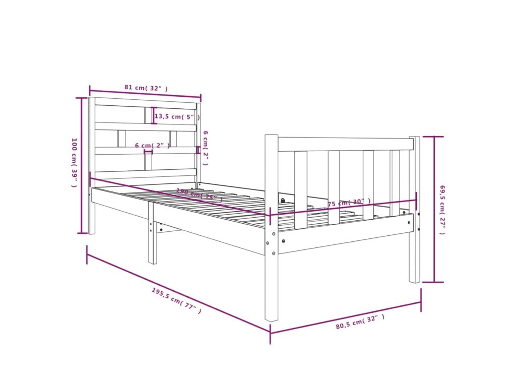 vidaXL Posteľný rám masívna borovica 75x190 cm 2FT6 malé jednolôžko
