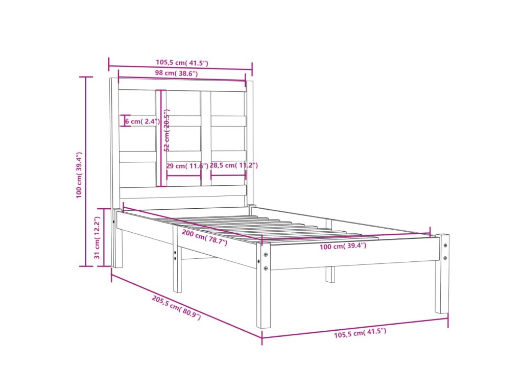 - Rozmery rámu postele: 205,5 x 105,5 x 31 cm (D x Š x V)