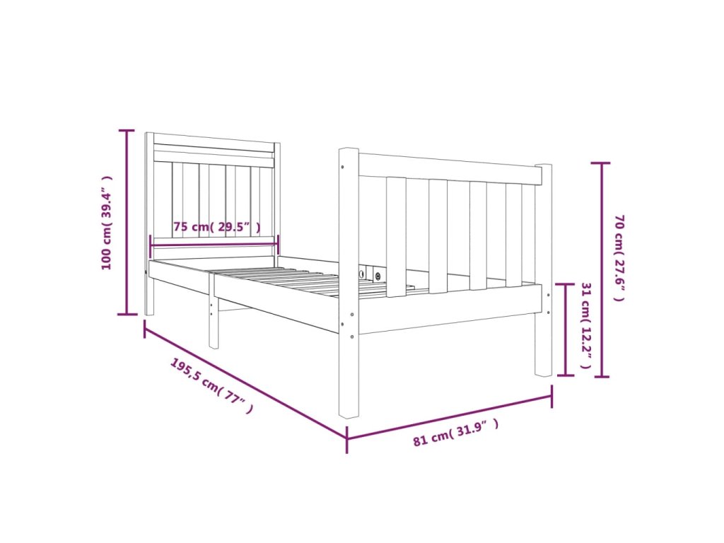 - Tento rám postele je vhodný pre matrac s rozmermi 75 x 190 cm (2FT6 malé jednolôžko).