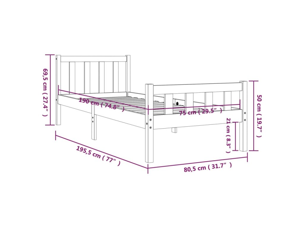 - Rozmery rámu postele: 195,5 x 80,5 x 69,5 cm (D x Š x V)