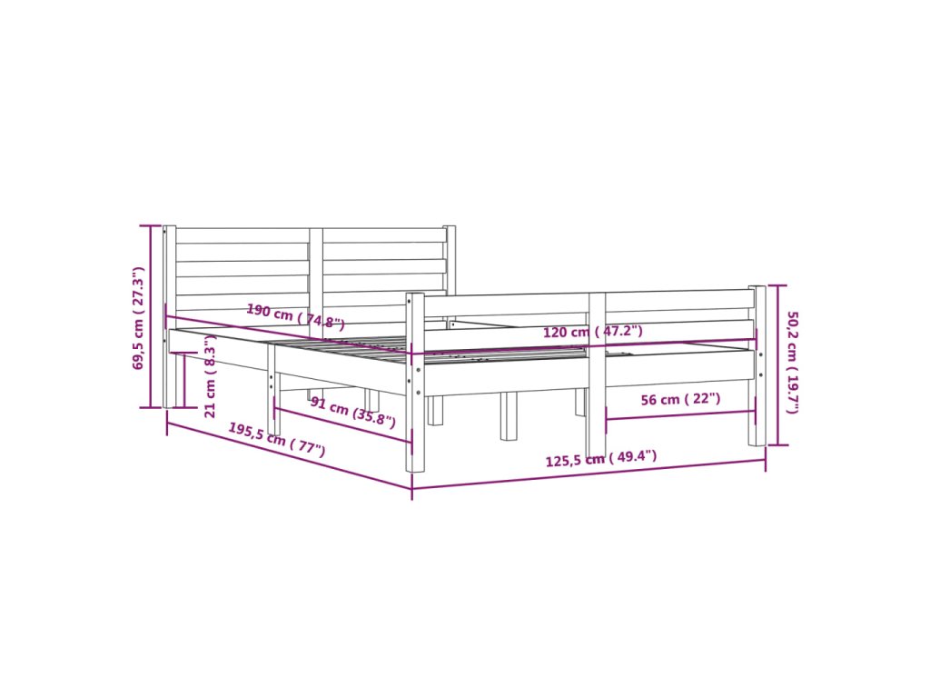 - Tento rám postele je vhodný pre matrac s rozmermi 120 x 190 cm (4FT malé dvojlôžko).