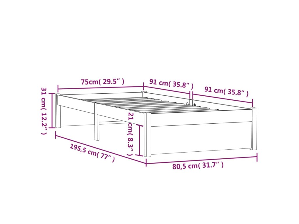 - Tento rám postele je vhodný pre matrac s rozmermi 75 x 190 cm (2FT6 malé jednolôžko).