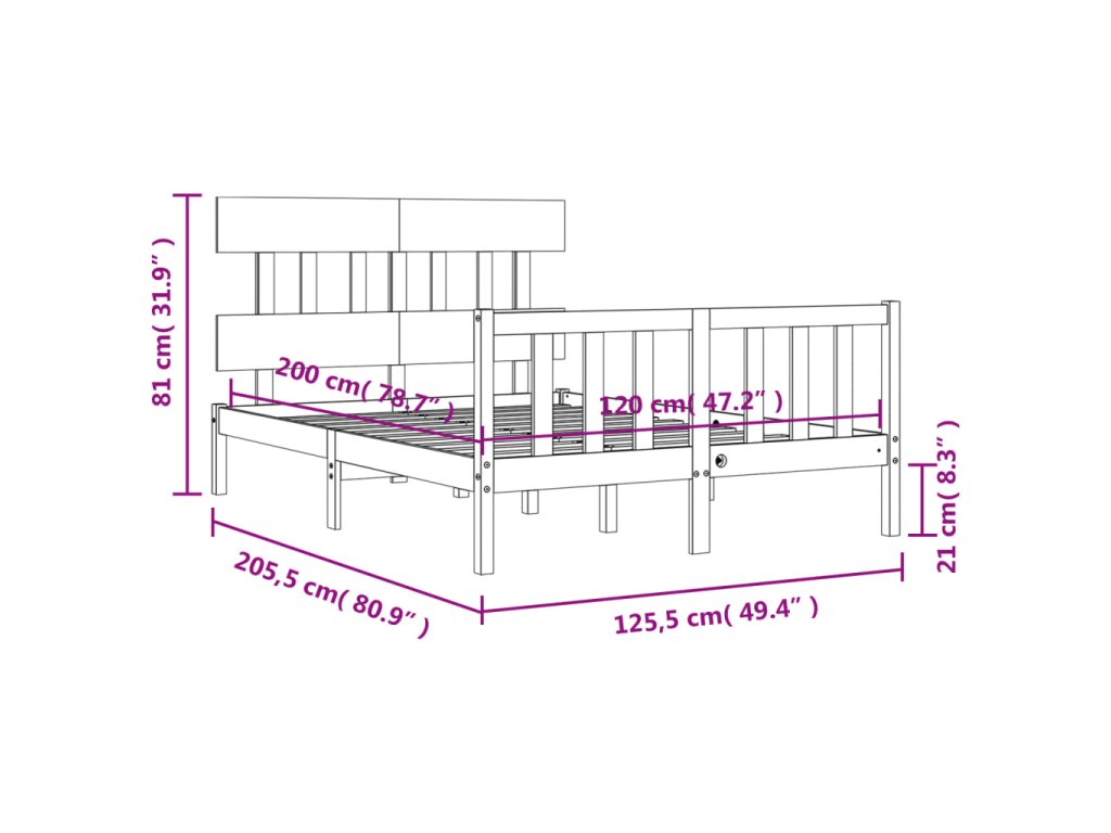 vidaXL Posteľný rám s čelom 120x200 cm masívne drevo