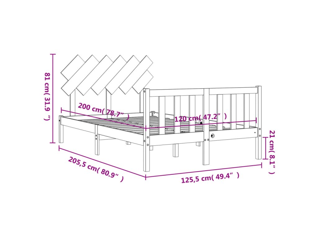 - Celkové rozmery postele: 205,5 x 125,5 x 81 cm (D x Š x V)