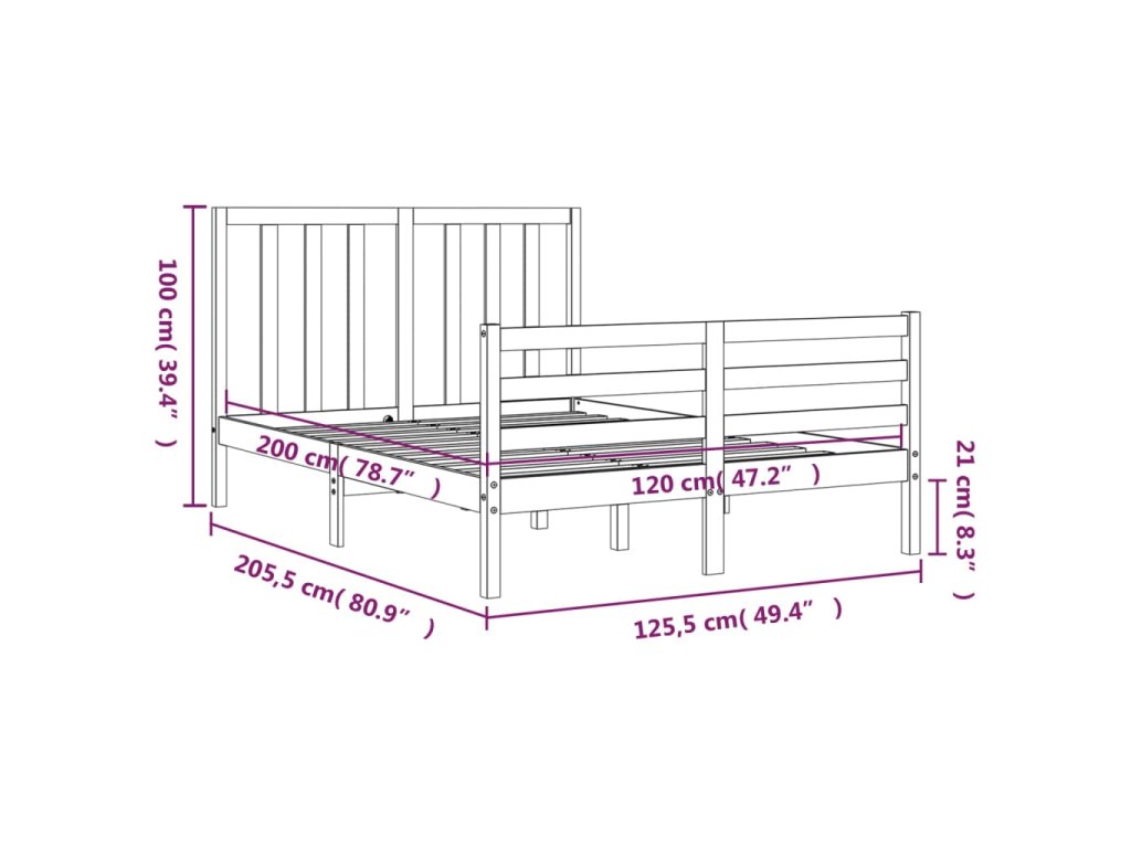 vidaXL Posteľný rám s čelom 120x200 cm masívne drevo