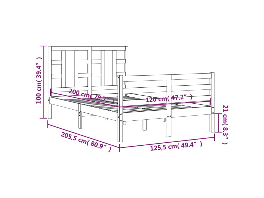 vidaXL Posteľný rám s čelom 120x200 cm masívne drevo