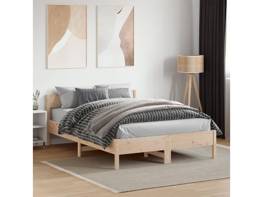 vidaXL Posteľný rám s čelom 135x190 cm borovicový masív