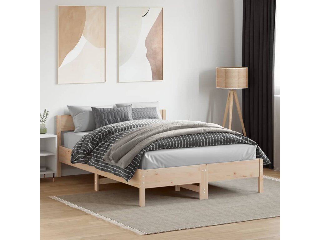vidaXL Posteľný rám s čelom 140x190 cm borovicový masív