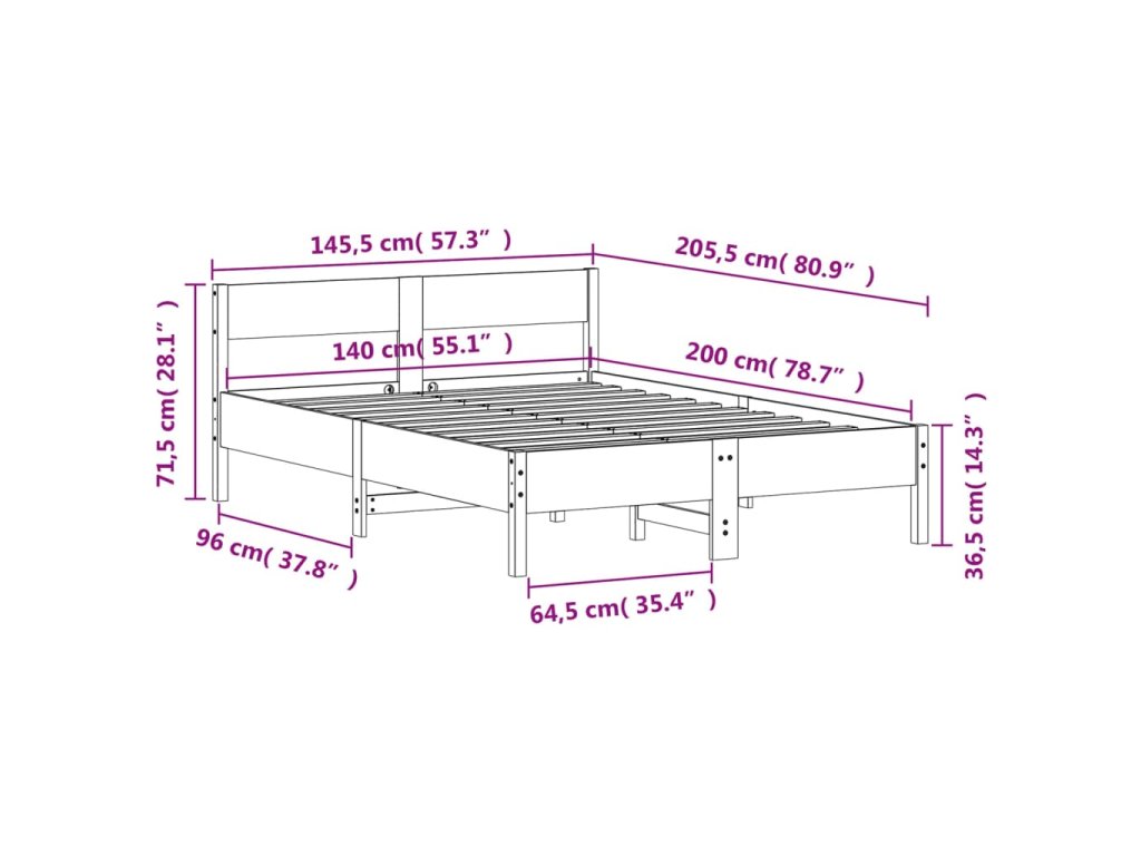 vidaXL Posteľný rám s čelom 140x200 cm borovicový masív