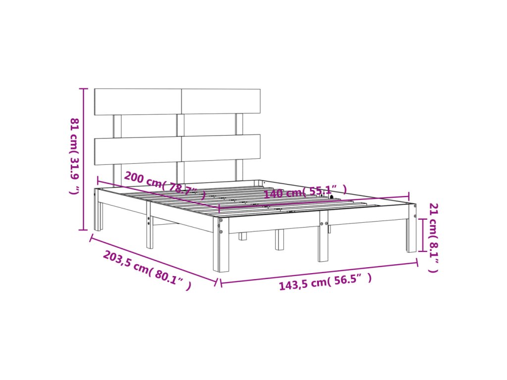 - Celkové rozmery postele: 203,5 x 143,5 x 81 cm (D x Š x V)