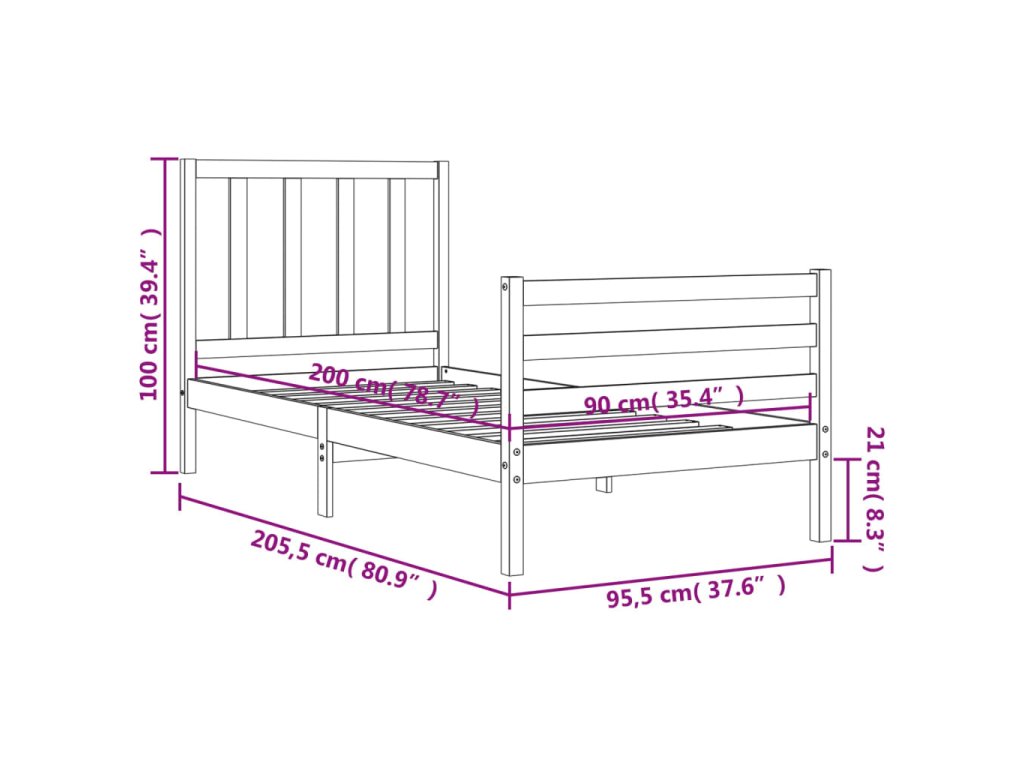 vidaXL Posteľný rám s čelom 90x200 cm masívne drevo
