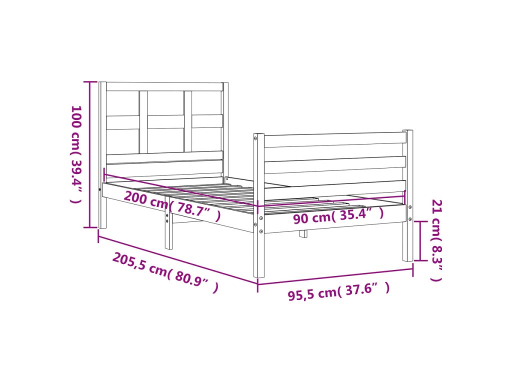 vidaXL Posteľný rám s čelom 90x200 cm masívne drevo