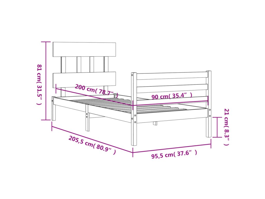 - Celkové rozmery postele: 205,5 x 95,5 x 81 cm (D x Š x V)