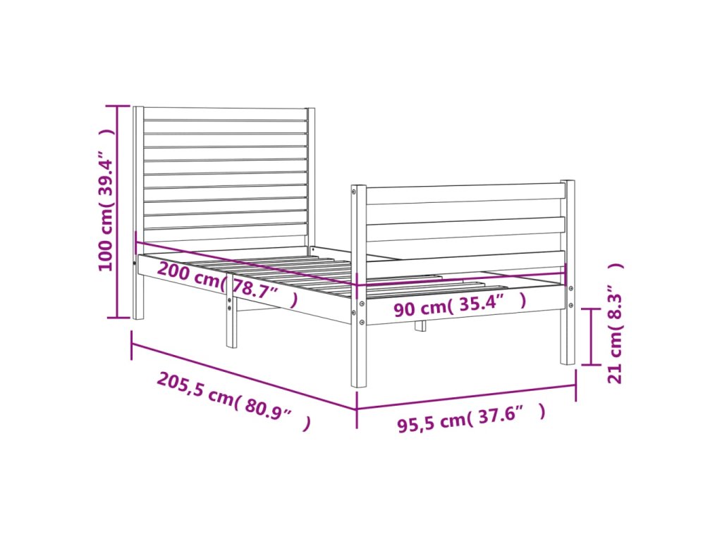 vidaXL Posteľný rám s čelom 90x200 cm masívne drevo