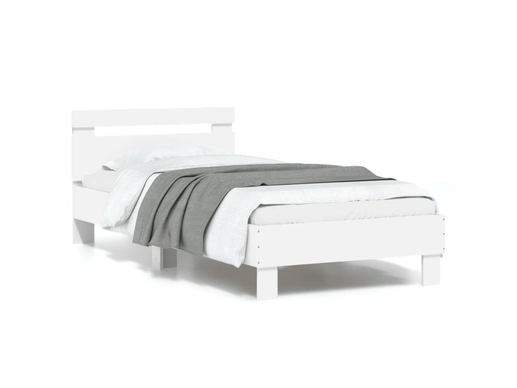 vidaXL Posteľný rám s čelom a LED svetlami biely 90x190 cm