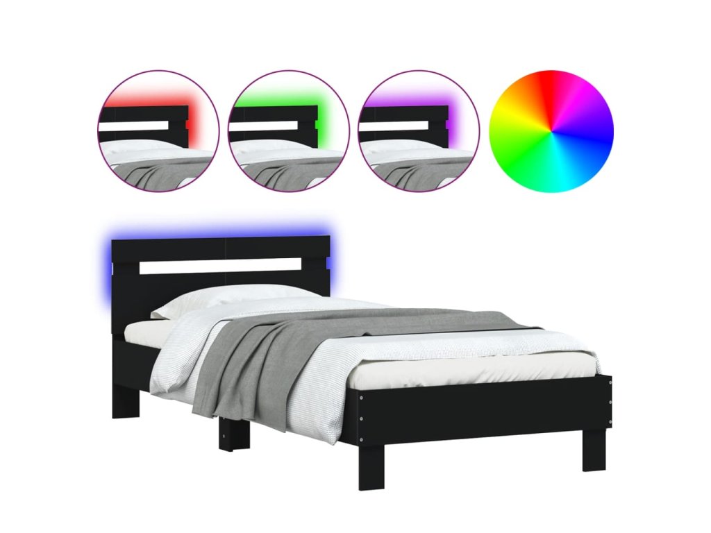 vidaXL Posteľný rám s čelom a LED svetlami čierny 100x200 cm
