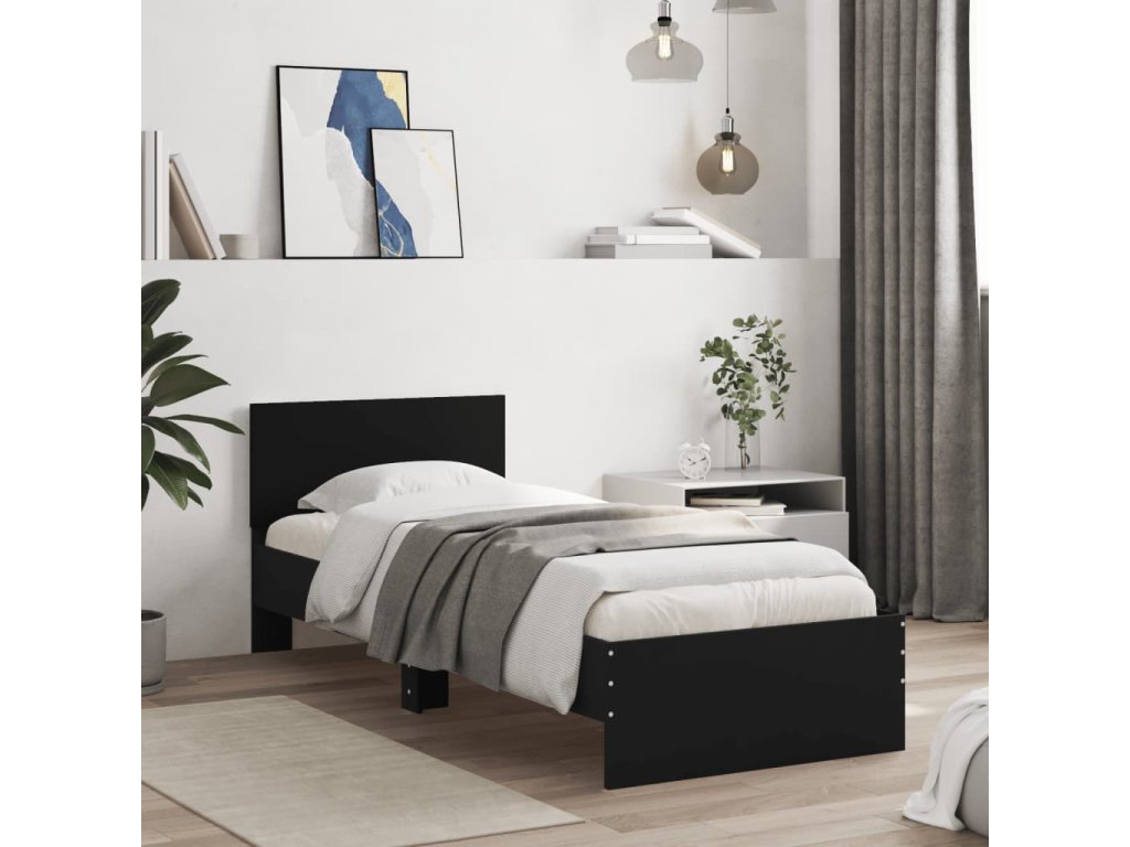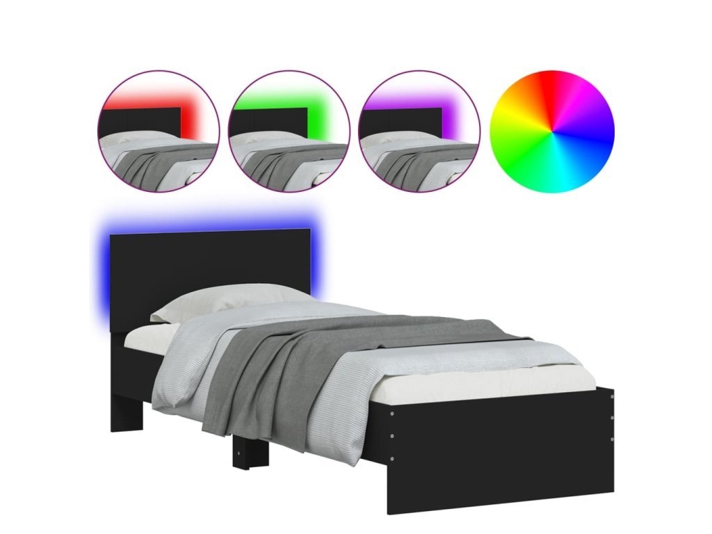 vidaXL Posteľný rám s čelom a LED svetlami čierny 75x190 cm