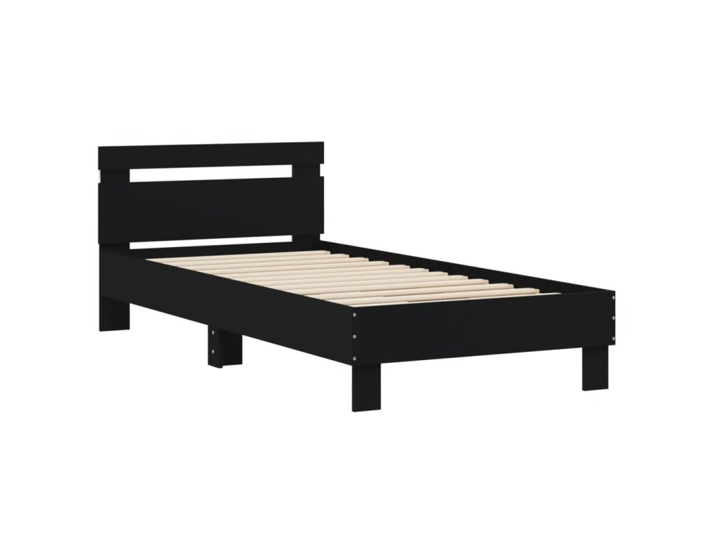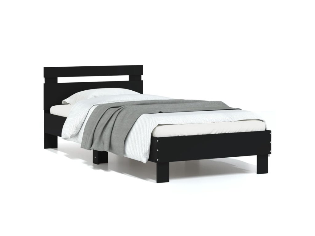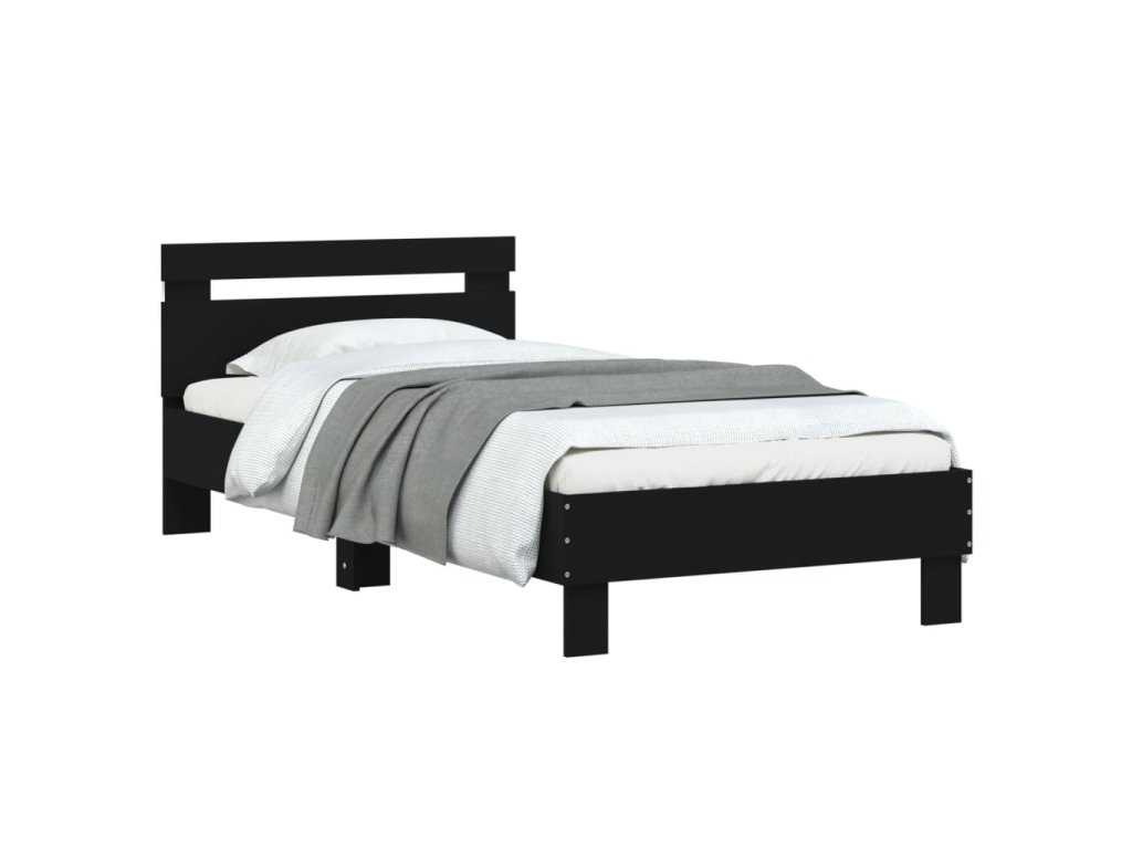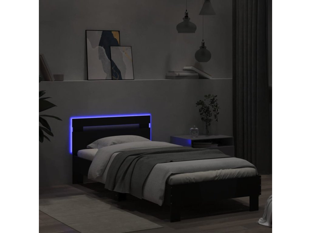 vidaXL Posteľný rám s čelom a LED svetlami čierny 75x190 cm