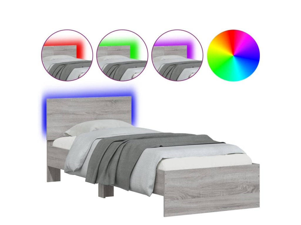 vidaXL Posteľný rám s čelom a LED svetlami sivý dub sonoma 90x200 cm